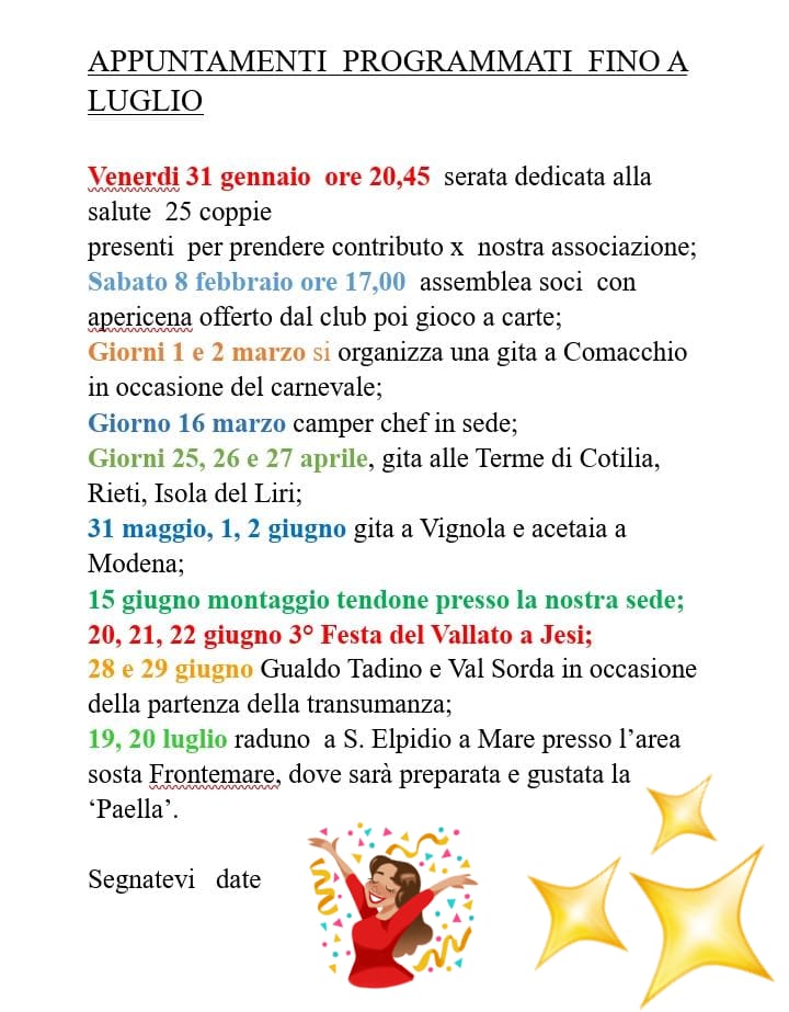 APPUNTAMENTI PROGRAMMATI FINO A LUGLIO 2025