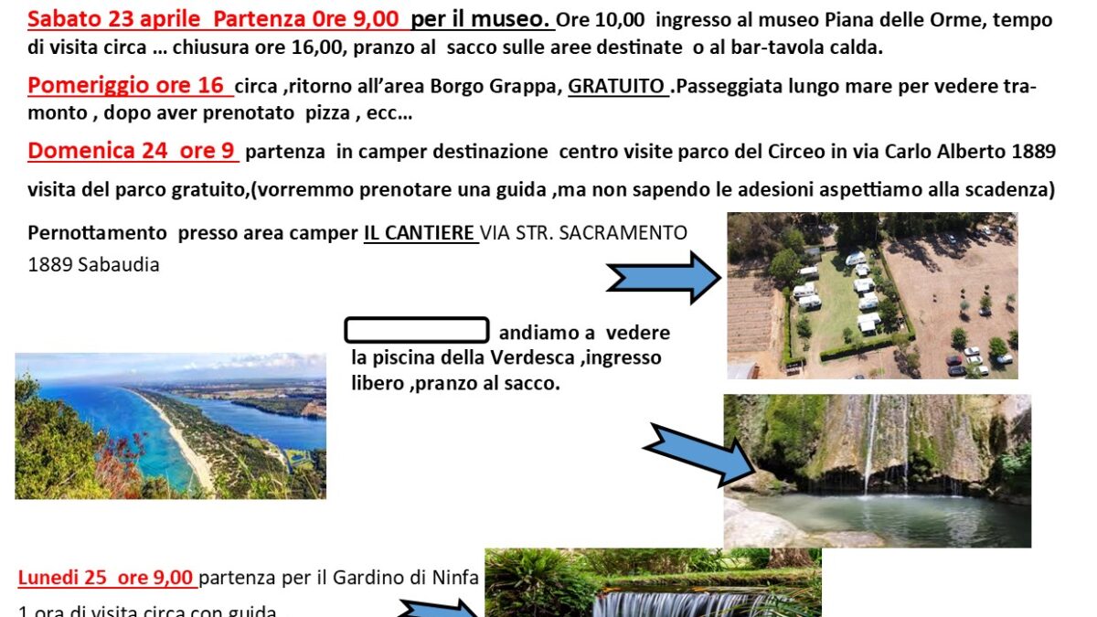 BUONGIORNO A TUTTI INVITO A PRENOTARSI AL RADUNO DEL 22-25 APRILE 2022 A LATINA ,PARCO DEL CIRCEO ,PIANA DELLE ORME ,